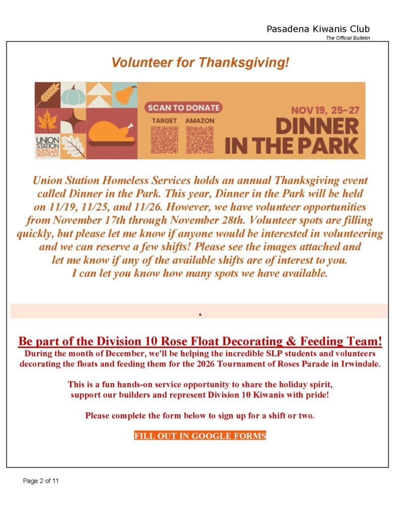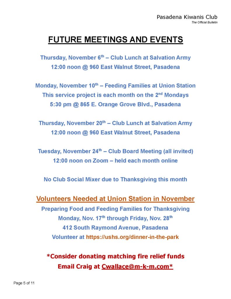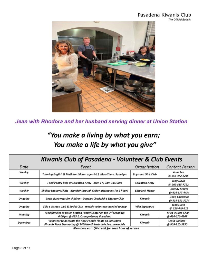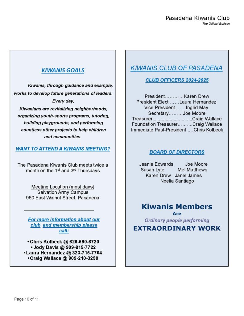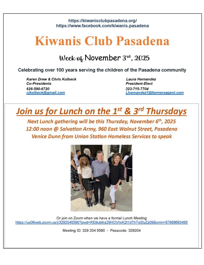 Kiwanis Club of Pasadena Facebook Posts